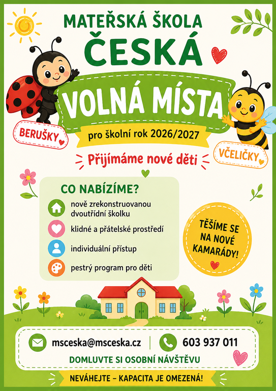 Zápis do MŠ Česká 2026/2027